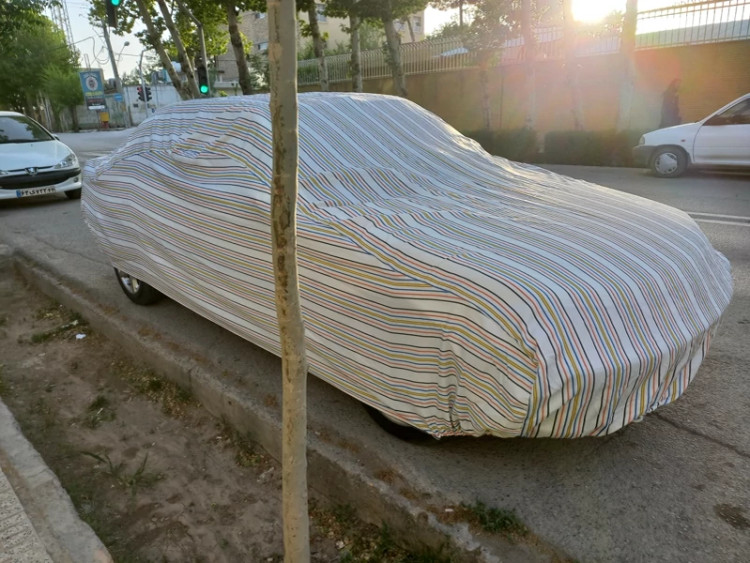 چادر ماشین برزنتی نخی مقاوم به آفتاب و داخل خزدار پنبه ای مناسب برای خودروهای رنگ مشکی و رنگهای متالیک خاص