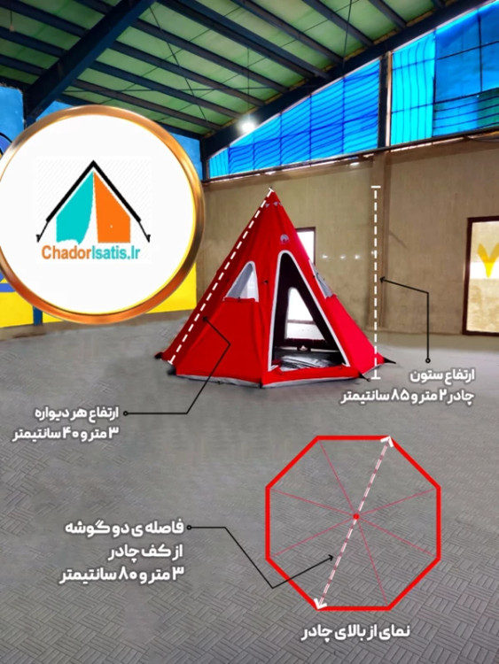 جنس کف چادر : ضد آب فاصله دوگوشه از کف به ۳متر و ۸۰ سانتی متر می رسد