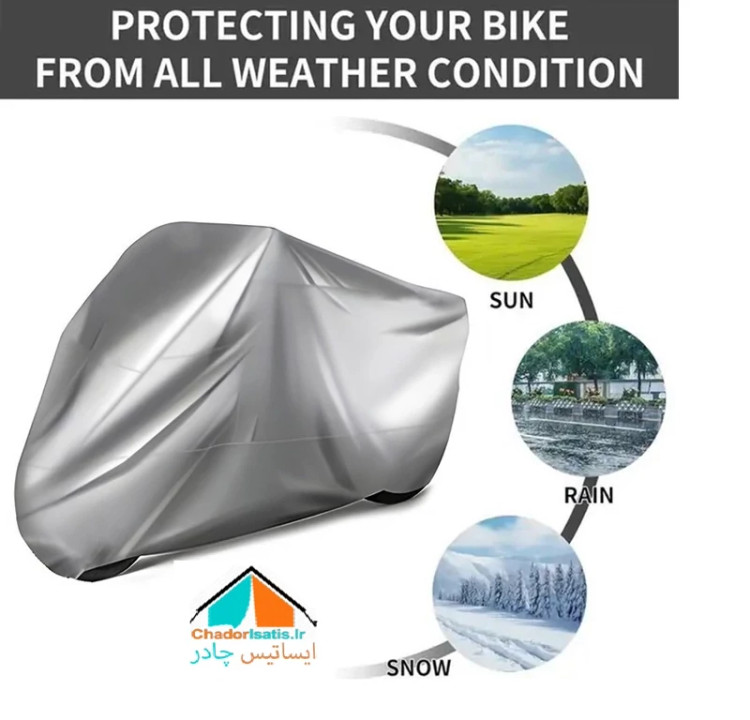 این چادر ضد آب ، مقاوم به آفتاب ، ضد خش و ضد گرد و غبار میباشد. پوشش دهی آن کامل است و تمام قسمت های موتور سیکلت را میپوشاند.